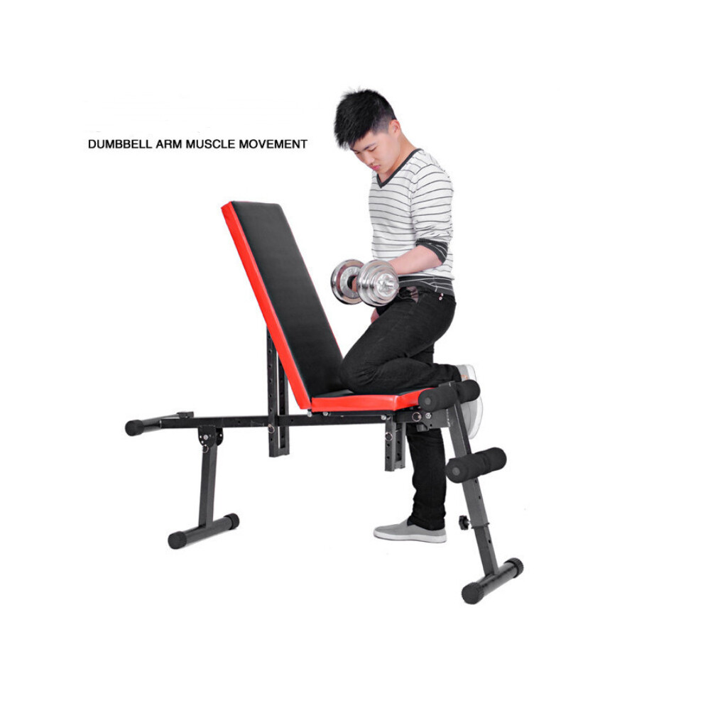 This multifunctional training aid can be used for different purposes: as a dumbbell chair, bench, sit-up chair and so on. Just change the position, the angle and there you have it: a different exercise partner. Feel free to rely on this new solid and stable training partner: to do bent knee sit-ups, ab crunches with proper lower back support or chest and shoulder presses. It also includes T-bar leg hold down attachment.